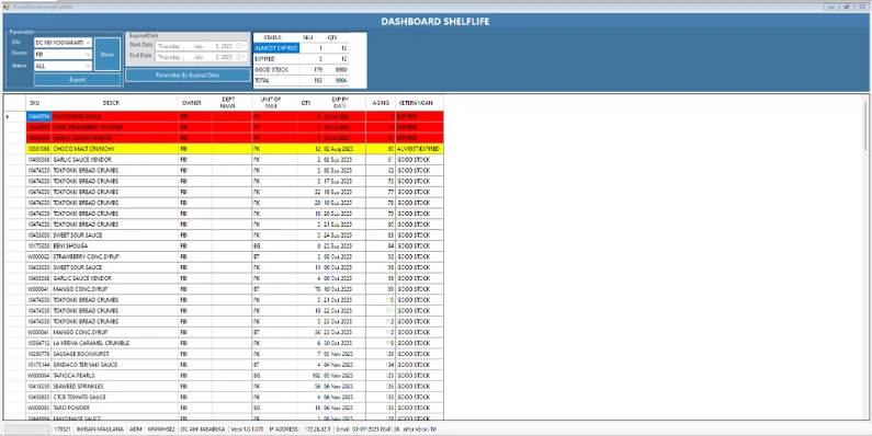 Aplikasi ini dibangun dengan integrasi SQL Server yang kuat, memanfaatkan Query dan Stored Procedure untuk memastikan performa tinggi dalam pengolahan data transaksi skala besar di lingkungan warehouse.