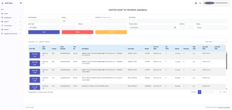 SCM Logistic Apps adalah platform web monitoring Supply Chain Management untuk tracking Inbound, Storing, Outbound, Inventory, dan laporan operasional logistik secara real-time.